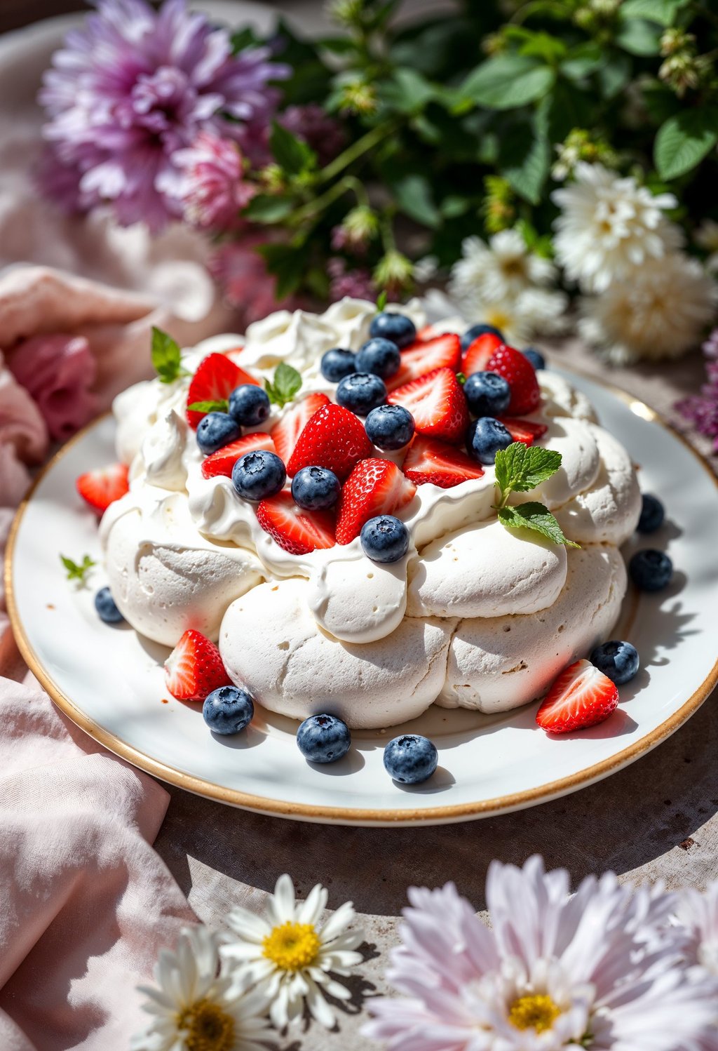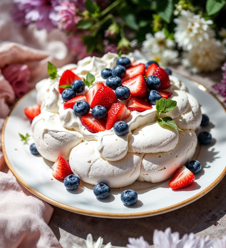 Pavlova met aardbeien & vanilleroom